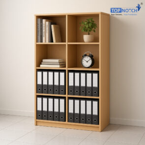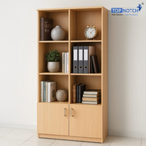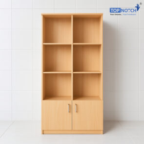 Topnotch Open Storage Unit with Bottom Cupboard | Model: TNC-SS-PC-087 | 850W × 450D × 1580H mm | 6 Open Compartments + Dual Door Cabinet | SS Handles | Soft-Close Hinges | Premium Pre-Laminated Particle Board