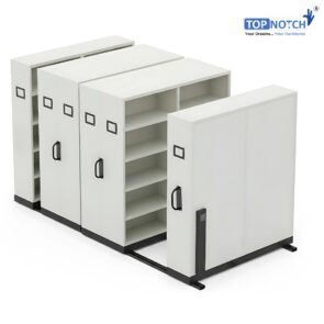 The 2 Bay – 24 Bodies Mechanical Mobile Storage Compactor is a high-density storage solution engineered for organizations that manage large volumes of documents, records, or inventory. Built with CRCA steel (0.8 mm, IS: 513 D-grade, TATA/JSW) and supported by a heavy-duty chain & sprocket mechanical drive system, this compactor ensures strength, durability, and effortless mobility even under full load.