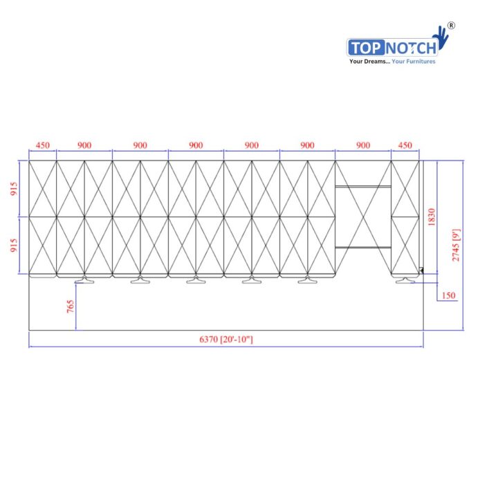 Configured as 1 Single Fixed Frame (SFF) + 5 Double Faced Movable (DFM) + 1 Single Faced Movable (SFM), this model accommodates 24 bodies (cabinets). Each body measures 2120 mm (H) × 915 mm (W) × 450 mm (D) and includes 4 adjustable/removable shelves, creating 5 compartments per body. In total, the system offers 120 compartments, with a load-bearing capacity of 60–70 Kg UDL per shelf.