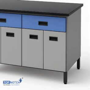 The Topnotch Corner Laboratory Cabinet (Without Sink) is a smart, space-optimizing modular furniture solution designed specifically for laboratory corner areas where storage, structural strength, and workflow efficiency are essential. This unit is ideal for chemistry, biology, physics, and multidisciplinary laboratories that require corner utilization without plumbing requirements.