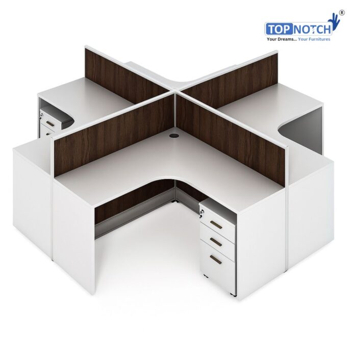 Buy 4-seater curv linear modular workstation with mobile pedestals, raceway system, and powder-coated aluminium panel. Made by Topnotch in Jaipur, supplied PAN India.