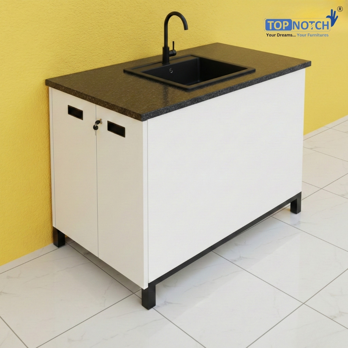 The Topnotch Laboratory Island Table – End Unit Cabinet with PP (Polypropylene) Sink and Three-Way Laboratory Water Tap is a high-performance, modular laboratory furniture solution designed for chemistry, biology, pharmaceutical, R&D, and institutional laboratories where reliable wet-work functionality and organized storage are essential.