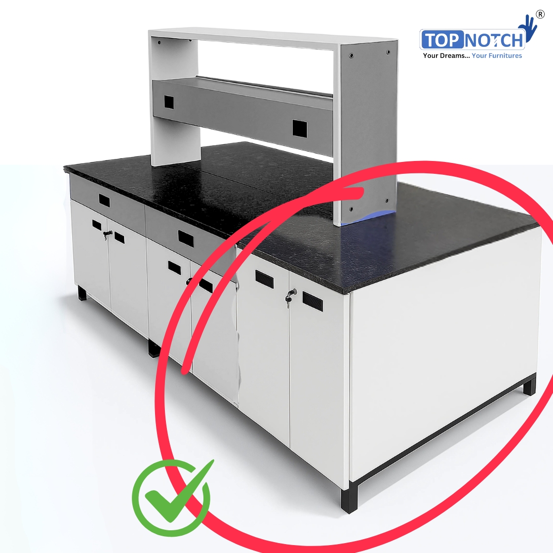 The Topnotch Laboratory Island Table – End Unit Cabinet (Without Sink) is a robust, modular laboratory furniture component designed for use as an end module in island bench configurations across chemistry, biology, physics, pharmaceutical, R&D, and institutional laboratories.