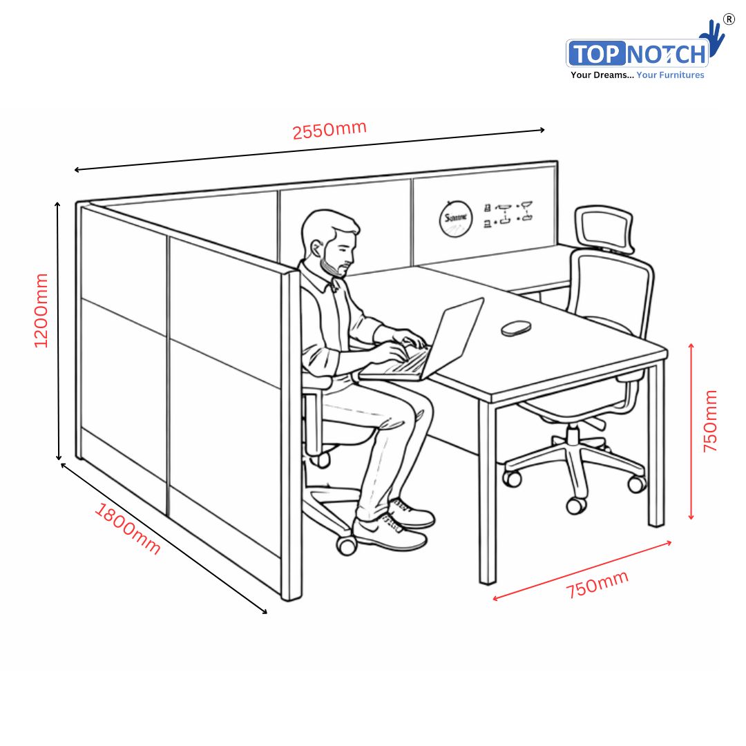✅ Spacious Work Area – 2550 × 1800 mm cubicle size