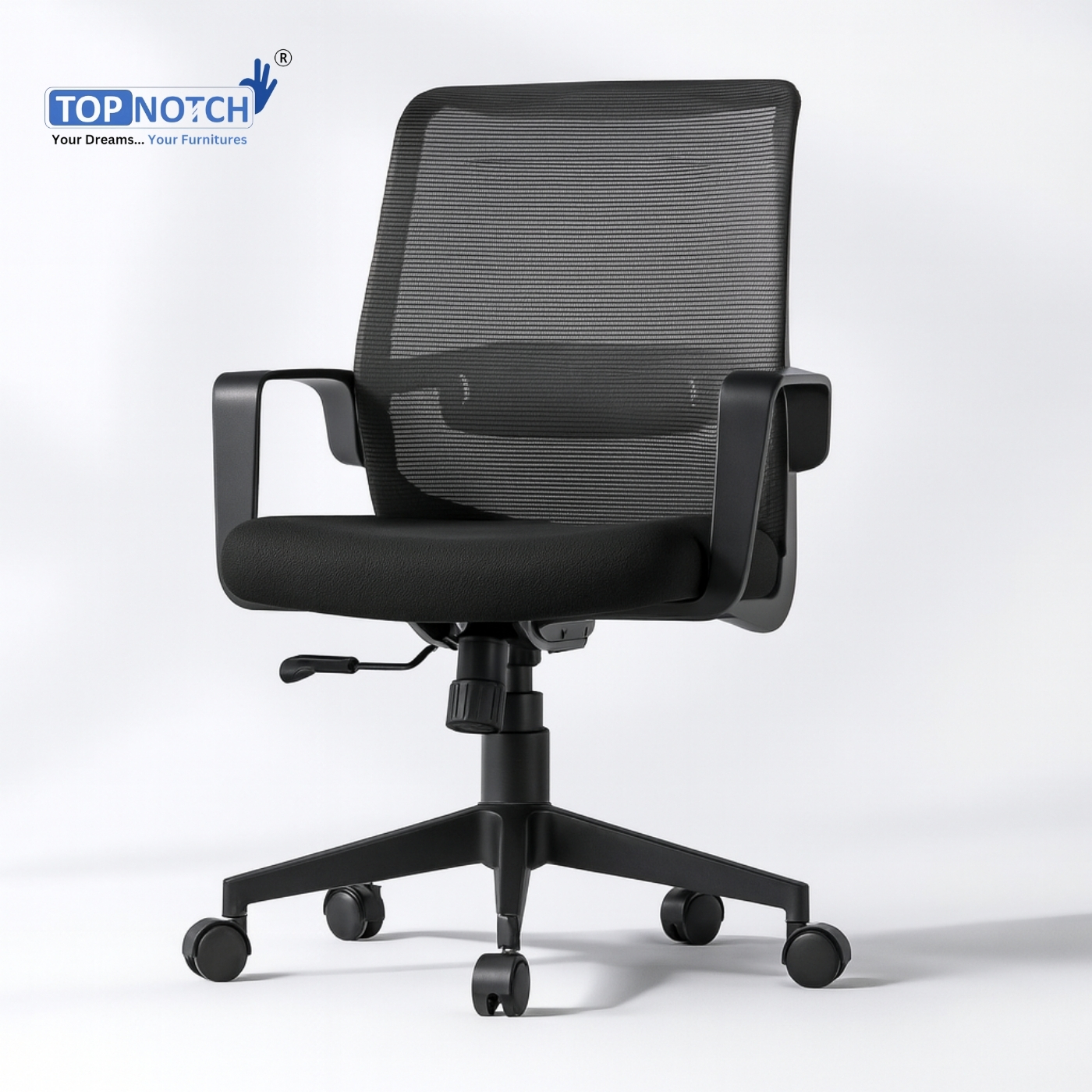 With a weight capacity of 100–110 Kg, this chair is robust enough for daily office use yet compact enough to fit into smaller spaces. Whether you are a corporate employee working full-time at a desk, a student preparing for exams, or a professional working from home, the Topnotch Mid-Back Mesh Chair provides reliable support and enhances productivity.