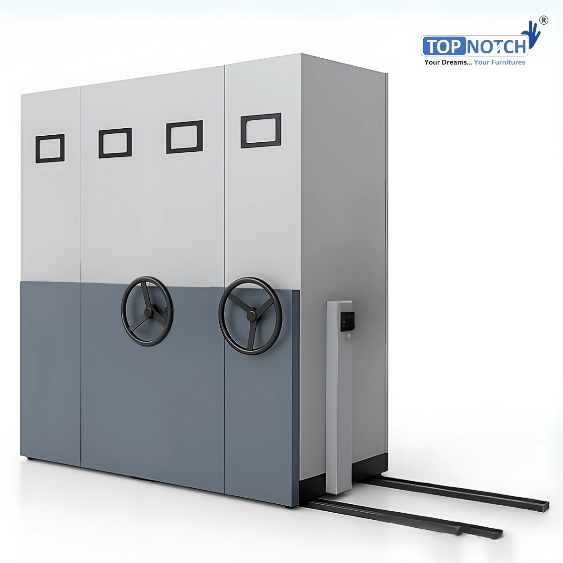 The Topnotch 1 Bay – 4 Bodies Mechanical Mobile Storage Compactor is a non-standard high-capacity storage unit designed for professional environments that require secure, space-saving, and modular storage. Built from CRCA steel with epoxy polyester powder coating, this compactor combines strength, durability, and modern aesthetics.