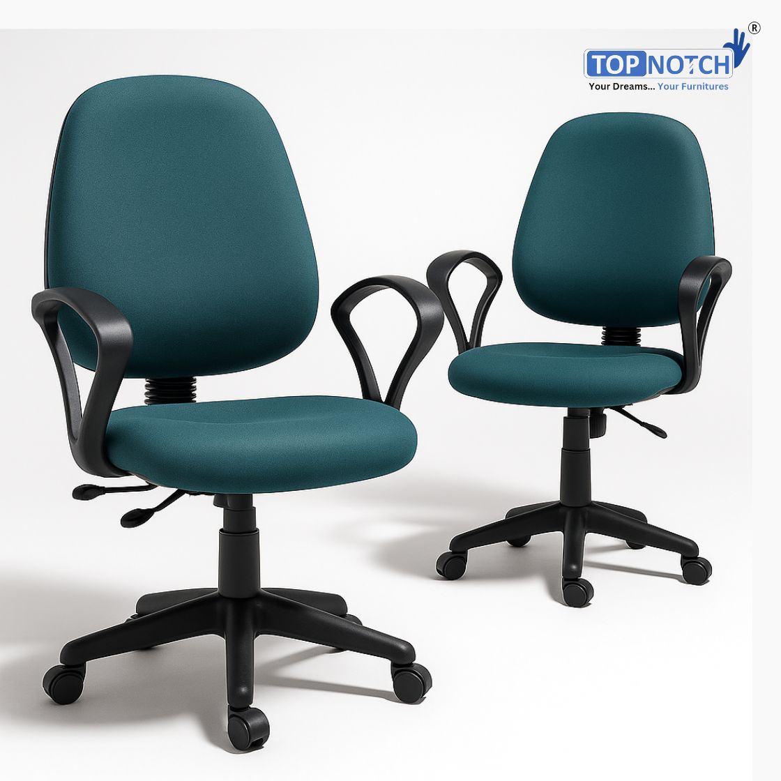 Topnotch’s Revolving Study & Computer Chair is crafted for comfort, function, and affordability. Designed with a soft fabric seat & backrest, tilt-back feature, and fixed armrests, this chair is ideal for students, home office setups, and workstations.