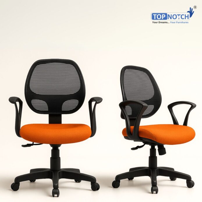 Revolving Office Chair – High Back Seat with Mid Mesh Backrest, Fixed Armrest, Dual Color Design – Topnotch