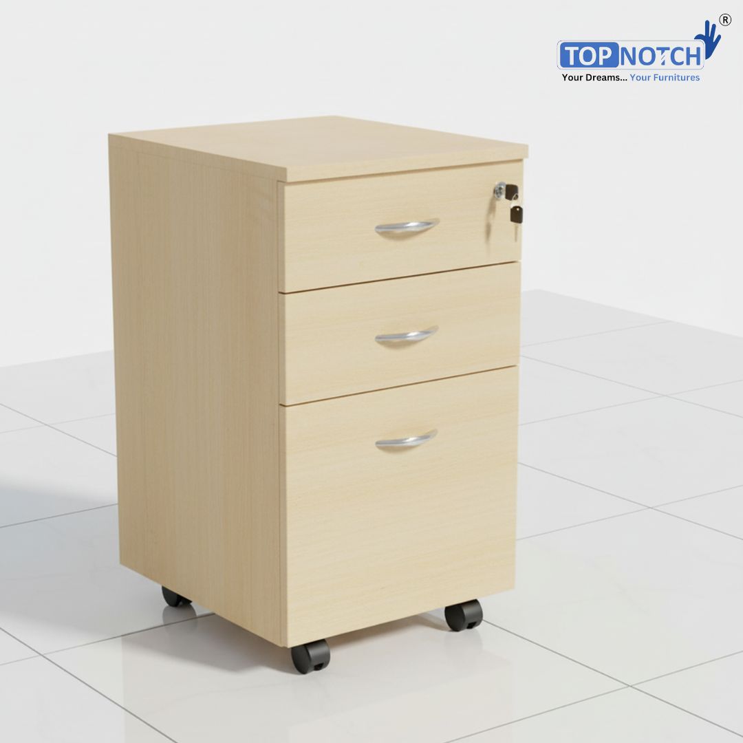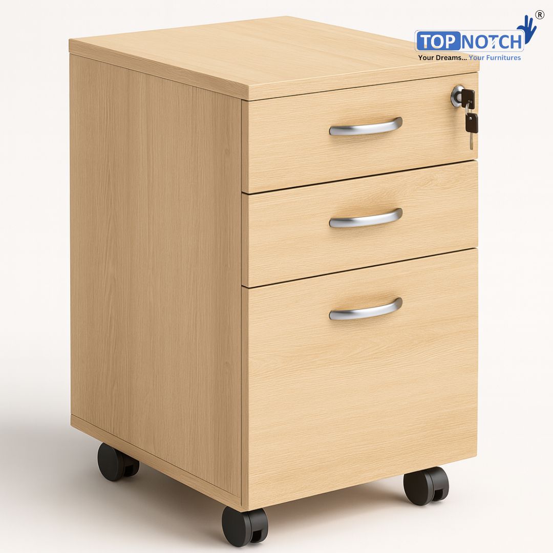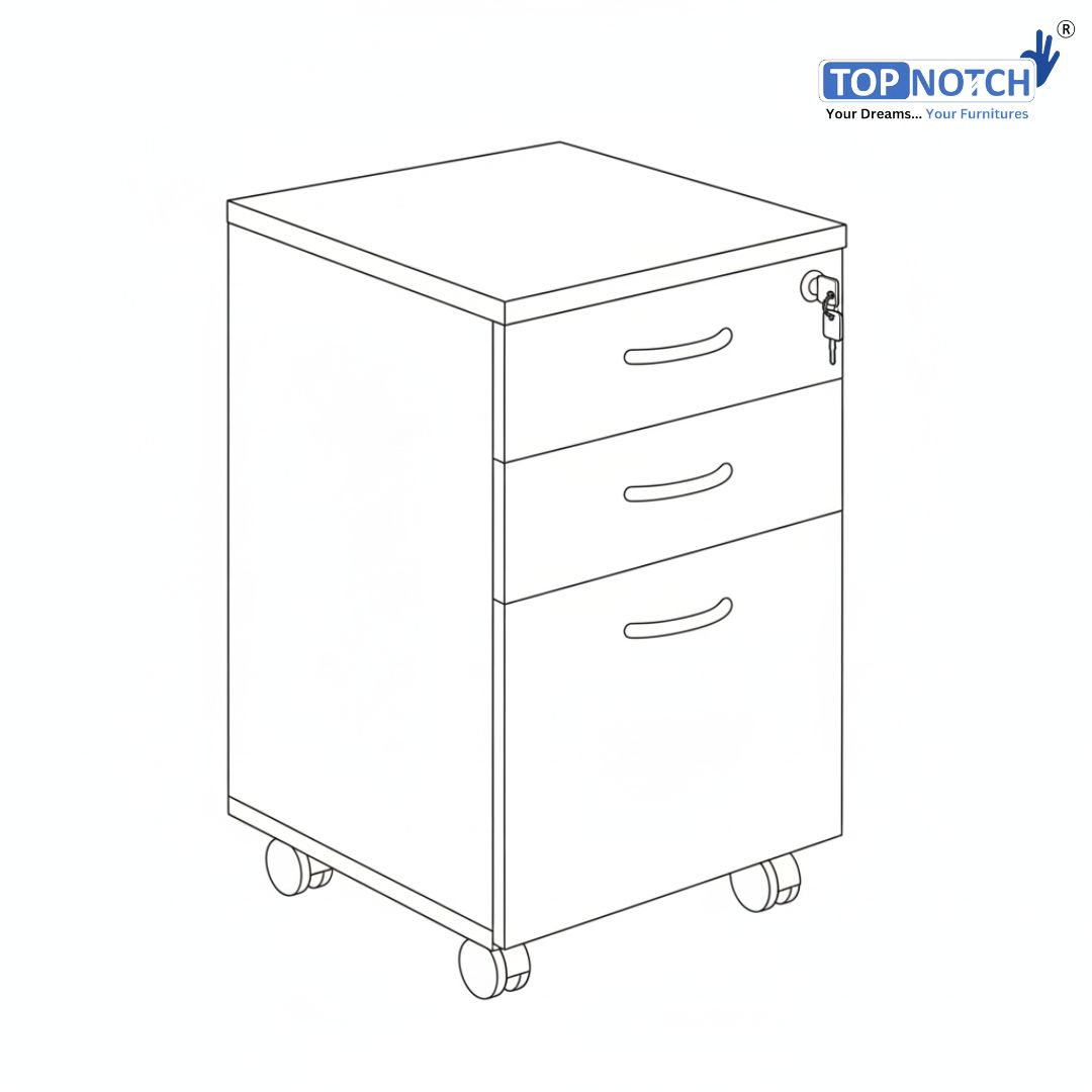 The Topnotch Mobile 3-Drawer Pedestal is a compact yet highly functional storage unit designed to provide security, mobility, and durability for modern workspaces. Perfect for corporate offices, study rooms, educational institutions, hospitals, banks, and home offices, this pedestal helps you organize files, stationery, and personal items efficiently.