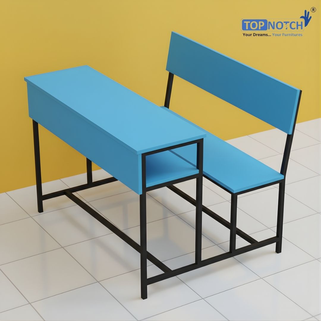 The Top Notch Dual Desk Cum Bench is a robust, space-efficient seating and study solution designed for schools, tuition centers, and home learning environments. Engineered with a heavy-duty powder-coated MS frame and high-quality pre-laminated particle board, this dual seater desk ensures durability, comfort, and long-term performance. The integrated desk and bench structure provides a stable, clutter-free study setup for two students.