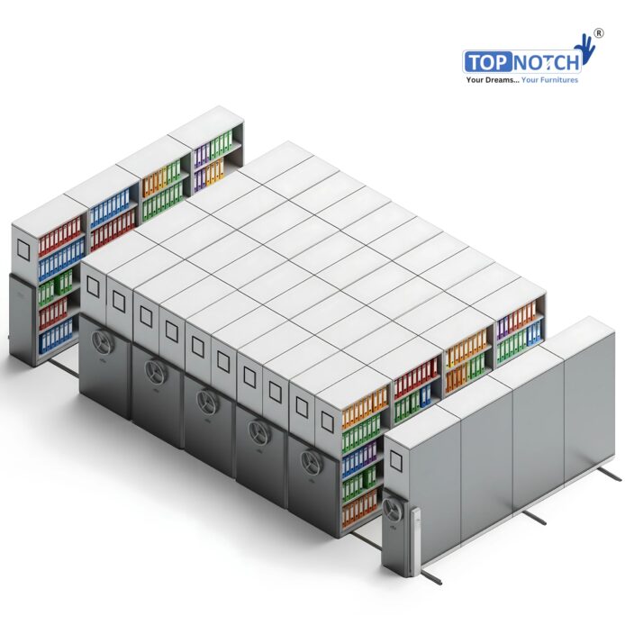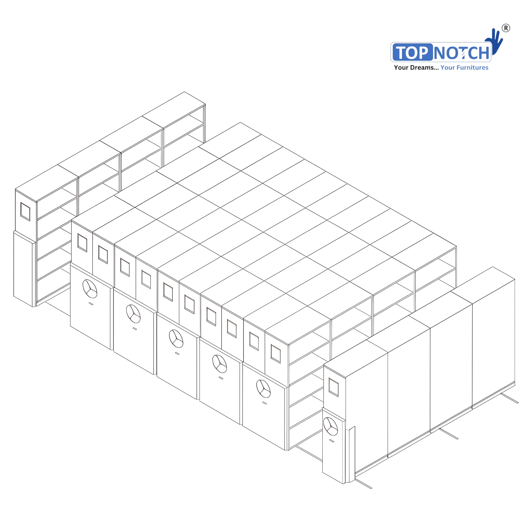 The Topnotch 4 Bay – 48 Bodies Mechanical Mobile Storage Compactor is the ultimate high-density storage solution for organizations handling extremely large volumes of files, records, or inventories. Engineered with precision, durability, and maximum space optimization, this model is designed for government archives, corporate offices, hospitals, banks, libraries, and industrial warehouses where traditional racks or almirahs simply cannot meet modern demands.
