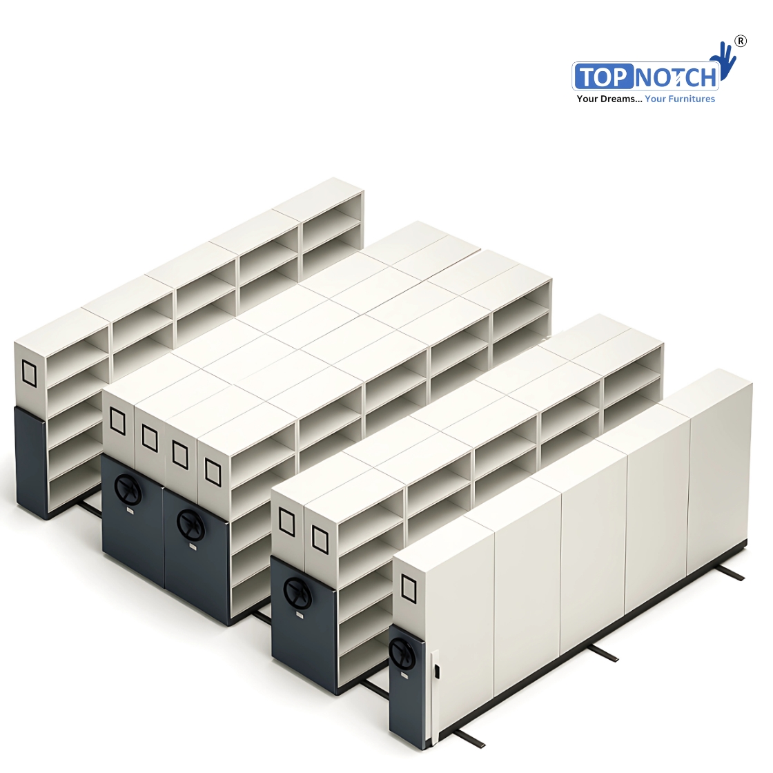 Topnotch 5 Bay – 40 Bodies Mechanical Mobile Storage Compactor | CRCA Steel | 4 Adjustable Shelves | High-Density File & Record Storage