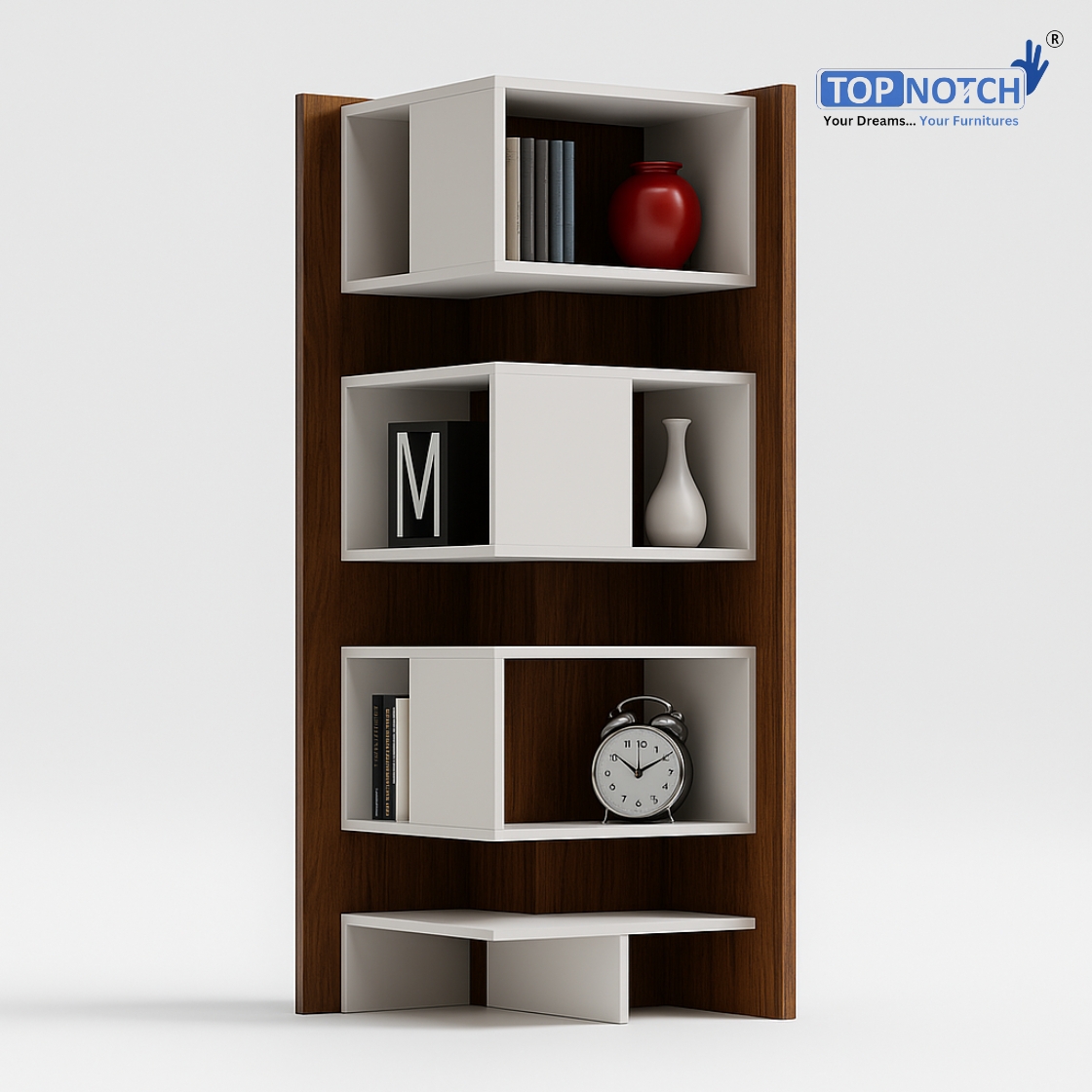 Buy Topnotch corner pillar display/bookshelves made from 18mm PLPB with PVC edge banding. Space-saving vertical design, ideal for libraries, offices, homes, and retail stores.