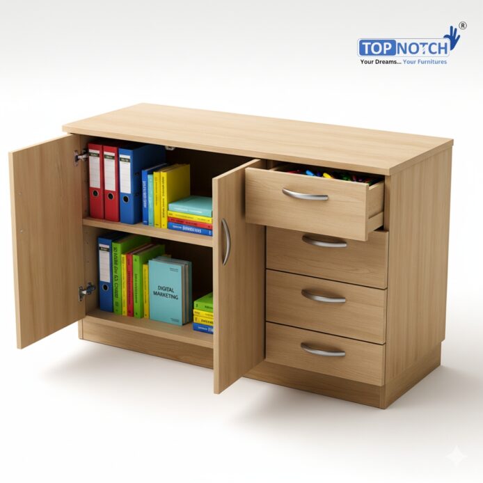 ✅ Whether used in corporate offices, manager cabins, libraries, institutions, or home workstations, this Topnotch Low Cabinet ensures a clutter-free, stylish, and highly functional storage solution.