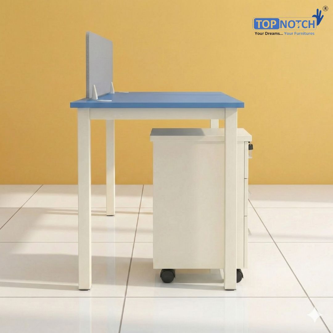 Topnotch Single Seater Modular Workstation – Mobile Pedestal with Lock, Screen Divider, Powder-Coated Metal Frame