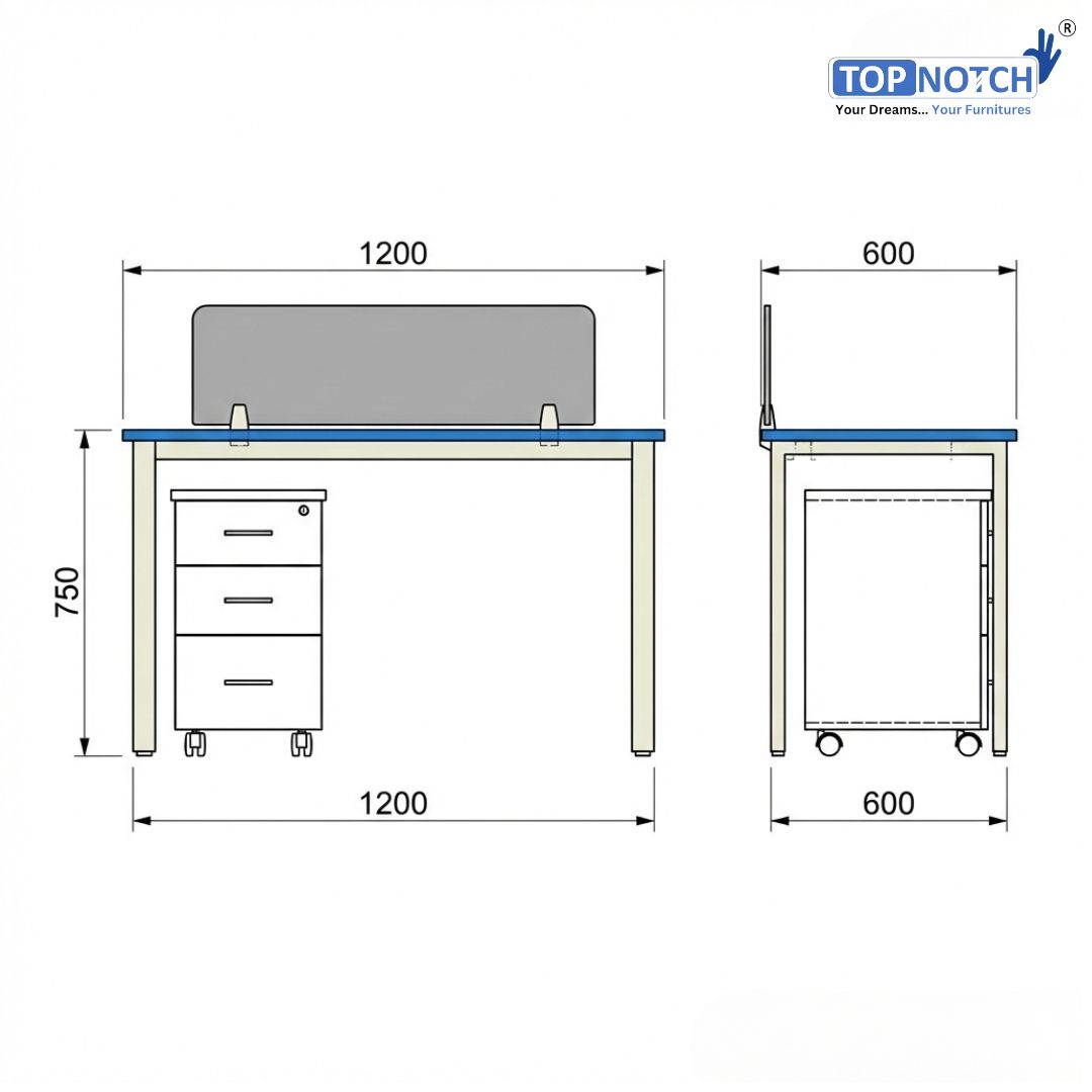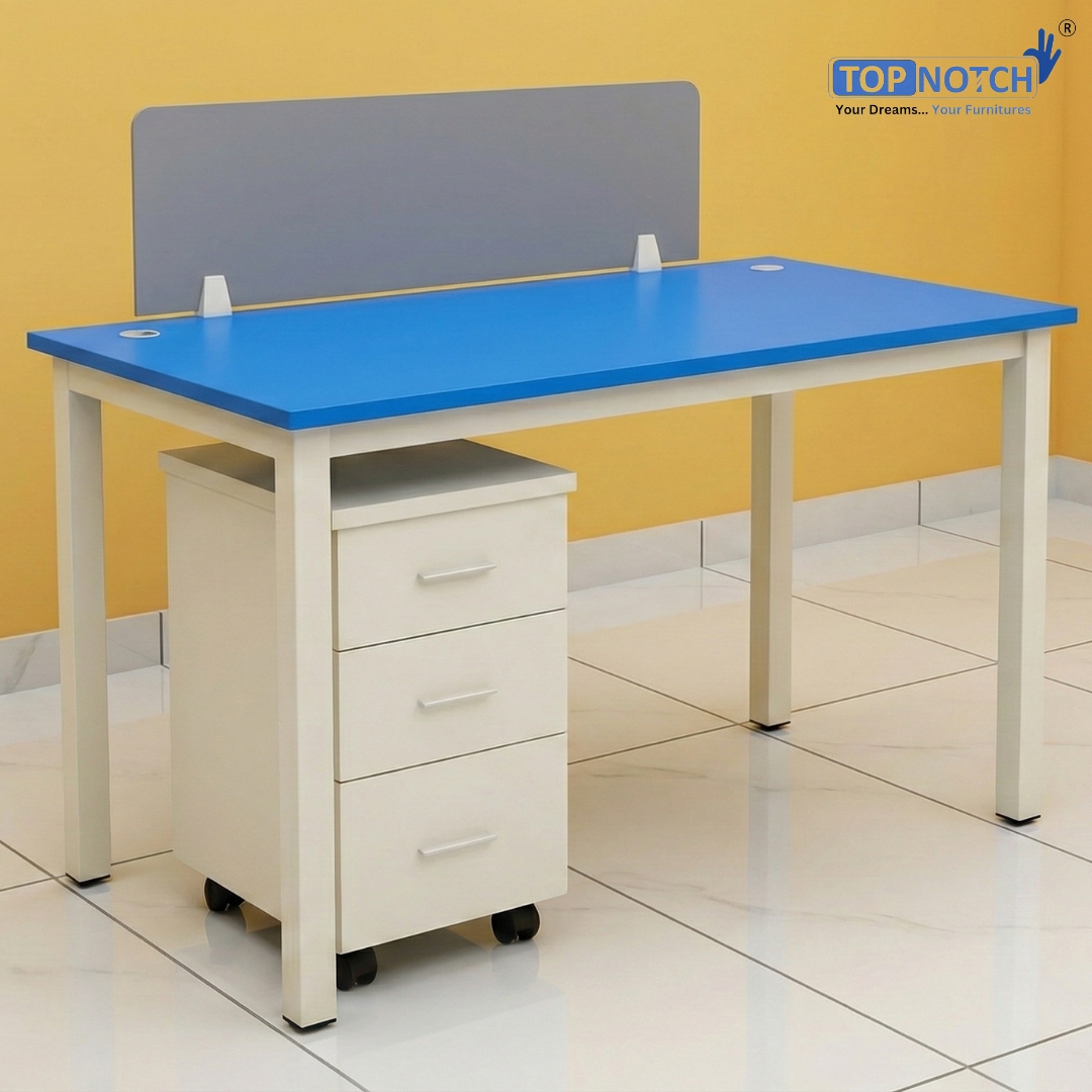 Designed for focused individual work, the Topnotch Single Seater Modular Workstation offers functionality, durability, and modern aesthetics. It includes a mobile 3-drawer pedestal with center locking, privacy divider panel, and a strong powder-coated metal frame — perfect for compact office spaces or private work zones.