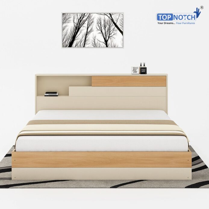 Double Bed with Box Storage & Headrest Cabinet – Dual Color | Engineered Wood | Knock Down | Topnotch