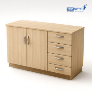 Topnotch Low Height Side Storage Cabinet | 2 Shutters with Shelf + 4 Drawers (2 Small + 2 Large) | 18mm Prelaminated MDF with 2mm PVC Edge Banding | 1600W × 450D × 750H mm