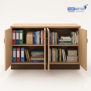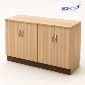 Topnotch Low Height Table Side Storage Cabinet with 4 Shutters | Dual-Shelf Closed Storage | 18mm Prelaminated MDF with 2mm PVC Edge Banding | 1600W × 450D × 750H mm
