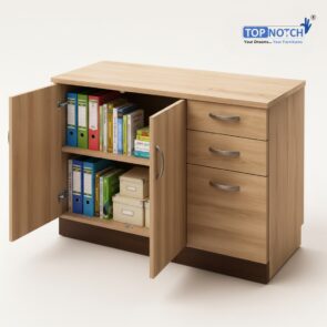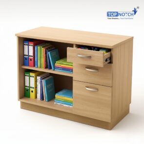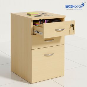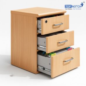 Topnotch 3-Drawer Pedestal (Without Wheels) | 400W × 450D × 680H mm | Pre-Laminated Particle Board (18 mm Outer, 12 mm Internal) | Telescopic Channels (30+ Kg) | Central Lock (Hettich/Ebco) | One Pencil + File Drawer