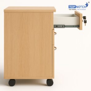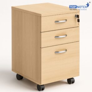 Top Notch 3-Drawer Mobile Pedestal (Size: L: 400mm x D: 450mm x H: 680mm) – Pine Shade, Pre-Laminated Particle Board